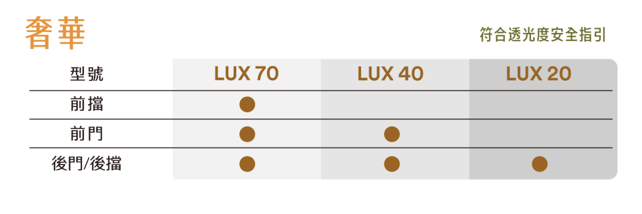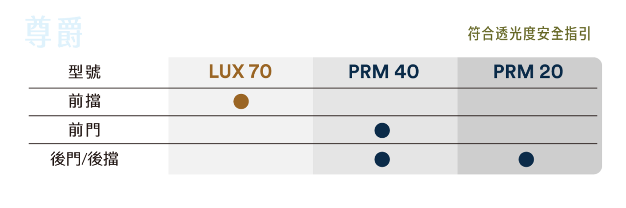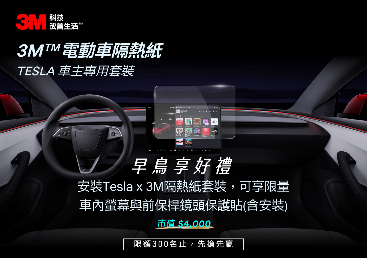 TESLA 車主專用套裝系列 3M隔熱紙為Tesla車主獨家設計,共有2種產品組合:奢華、尊爵 奢華系列擁有最高隔熱效果,適合追求極致隔熱的您;尊爵適合追求CP值的您 您可依個人需求喜好,自由選擇套組中的透光度做全車搭配